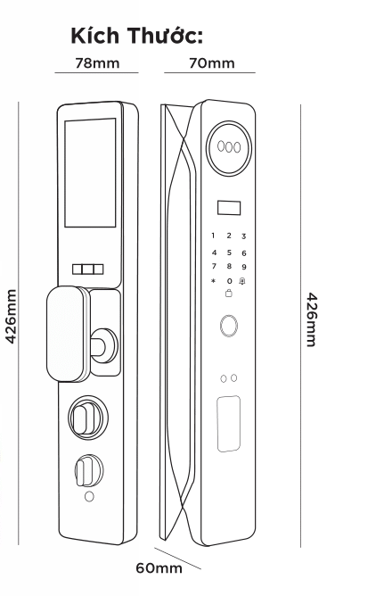 - Kích thước cửa: Độ dày 40-90mm, độ rộng đố cửa tối thiểu 80mm.