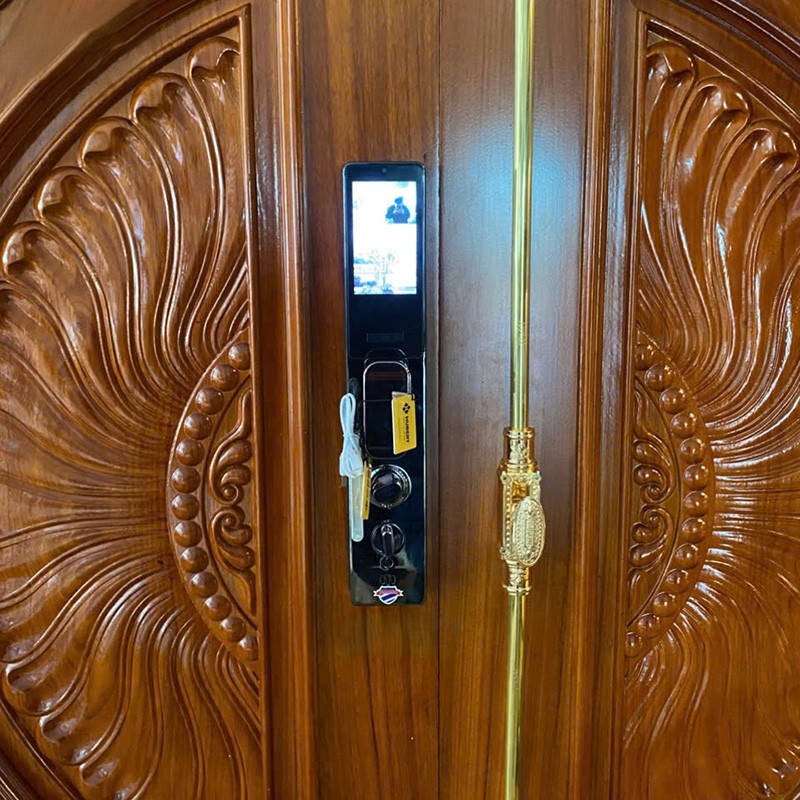- Về tiện ích và tính năng an toàn, điểm nổi bật là camera kép cho phép gọi video từ xa và quan sát trong/ngoài nhà. Khóa có hệ thống cảnh báo mở khóa trái phép, cảnh báo đột nhập, vô hiệu hóa thẻ từ khi bị mất và mật khẩu ảo dài 32 ký tự giúp chống nhìn trộm. Pin Lithium dung lượng lớn đảm bảo thời gian hoạt động bền bỉ, và bo mạch chống ẩm giúp khóa ổn định trong điều kiện khí hậu ẩm như ở vùng ven biển hoặc miền Bắc.
