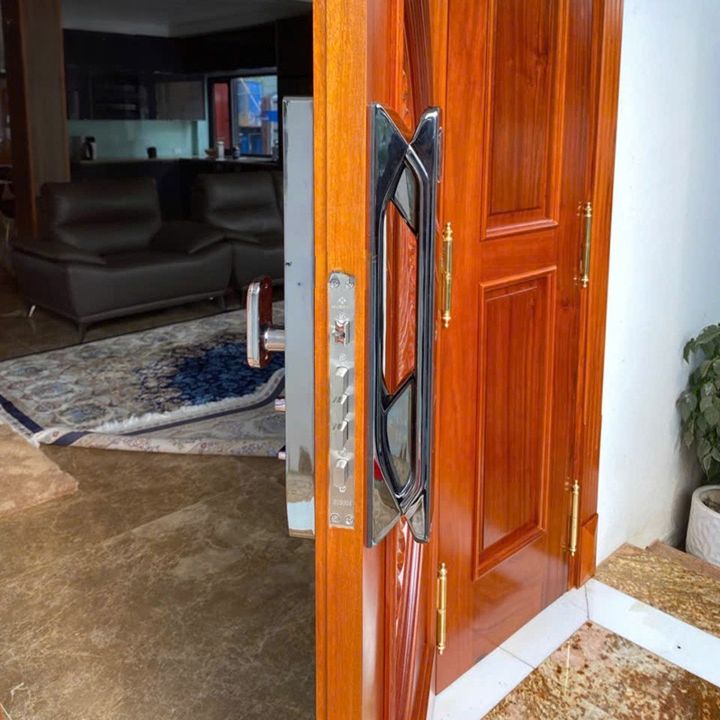 Khóa được trang bị pin sạc Lithium 5000mAh, đảm bảo thời gian vận hành dài và ổn định. Bo mạch chống ẩm đặc biệt giúp thiết bị thích nghi tốt với môi trường có độ ẩm cao như vùng ven biển hoặc khí hậu miền Bắc, đảm bảo độ bền lâu dài. Chất liệu hợp kim kẽm cùng thiết kế chắc chắn, bề mặt sang trọng không chỉ tạo điểm nhấn cho cửa gỗ mà còn giữ cho sản phẩm bền đẹp theo thời gian.