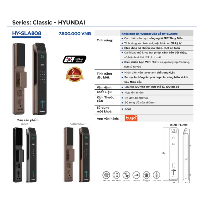 THÔNG SỐ KỸ THUẬT KHÓA VÂN TAY CỬA GỖ HYUNDAI HY-SLA808 BLACK