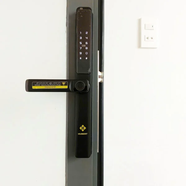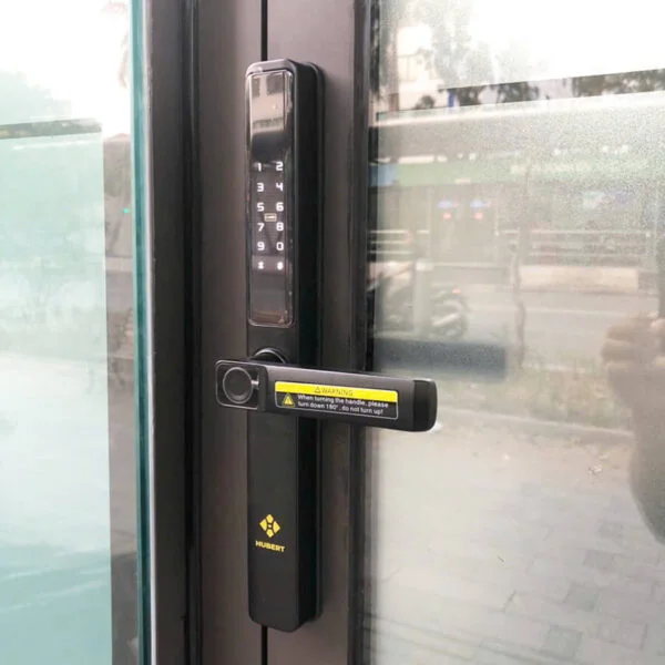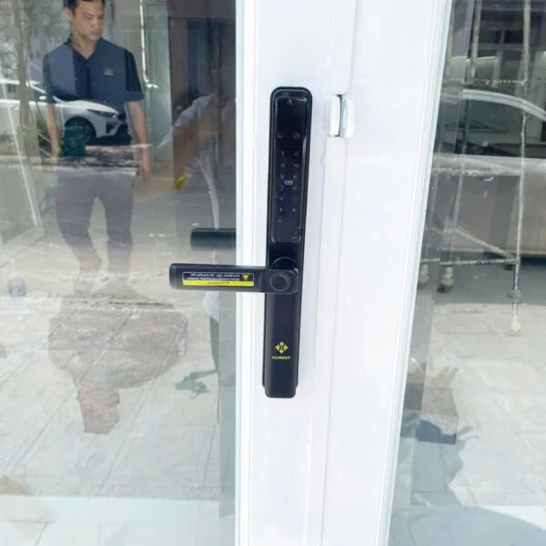 HÌNH ẢNH THỰC TẾ KHÓA VÂN TAY CỬA NHÔM HUBERT HB CN21 BLACK
