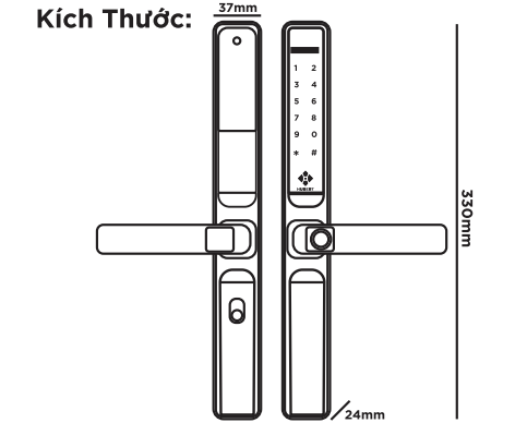 • Kích thước mặt ngoài: 330mm x 37mm x 24mm
