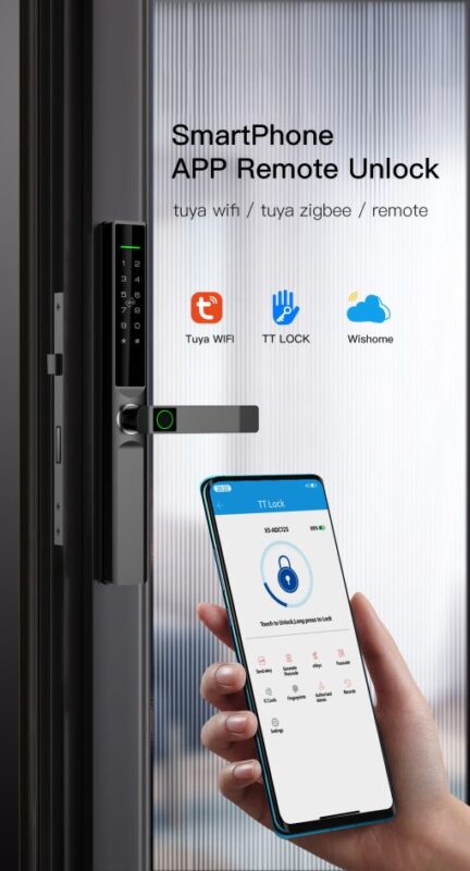 - Phương thức mở khóa: Vân tay, mật mã, thẻ từ, chìa cơ, và App TUYA