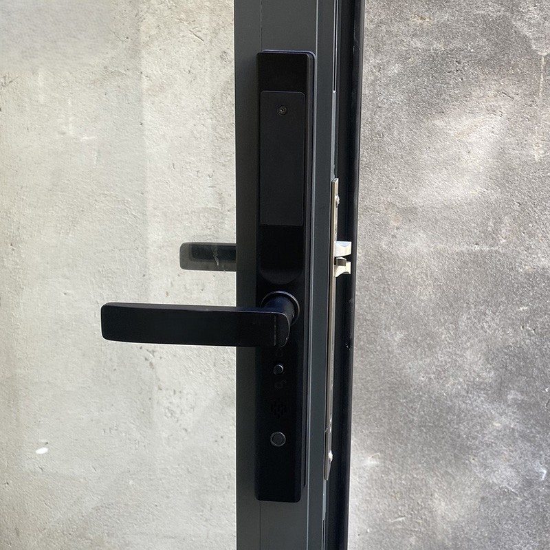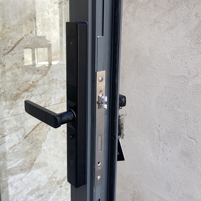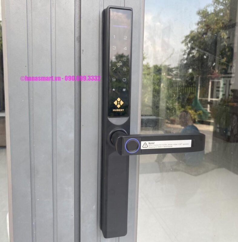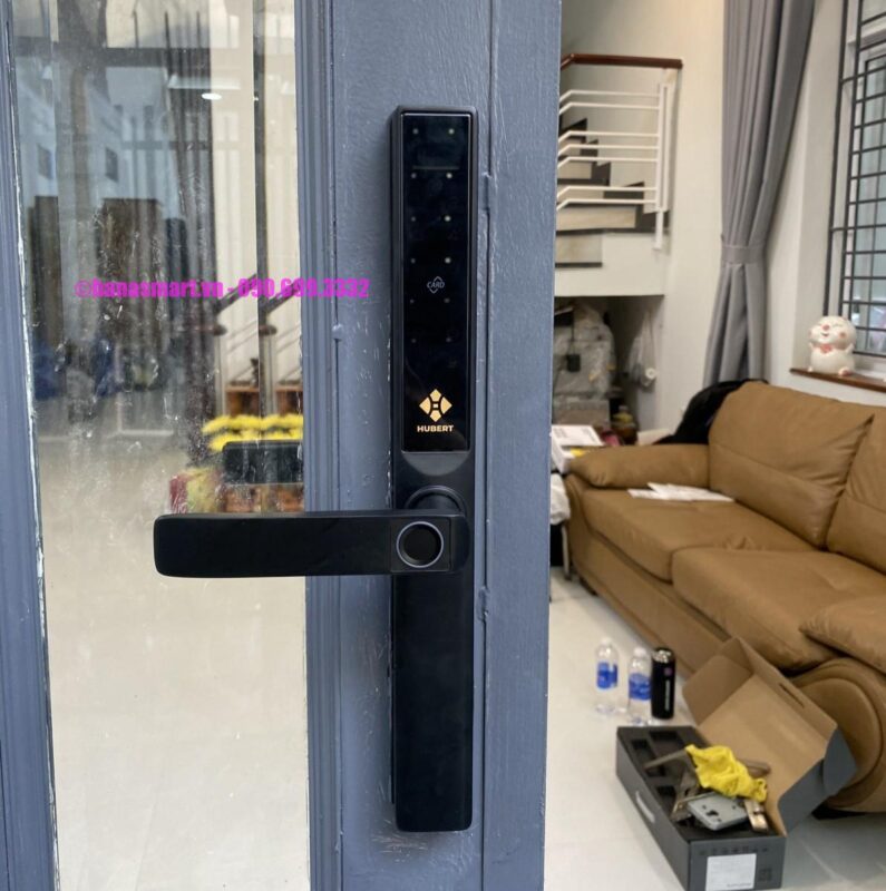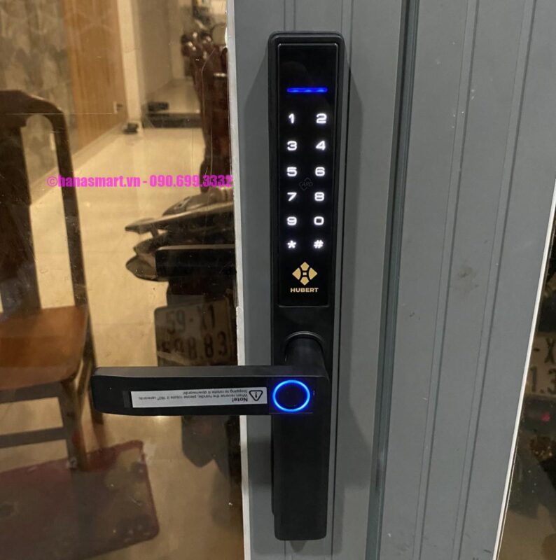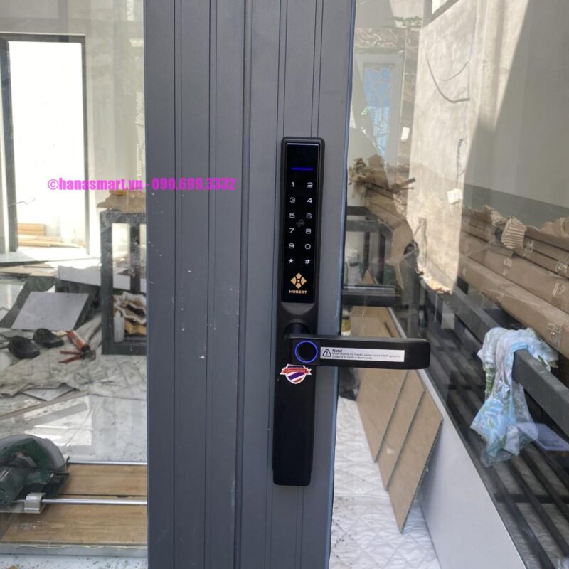 HÌNH ẢNH THỰC TẾ KHÓA VÂN TAY CỬA NHÔM HUBERT HB CN68 ROUGH BLACK