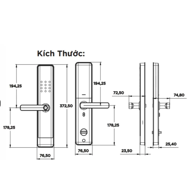 • Kích thước mặt ngoài: 372.5mm x 76.5mm x 23.5mm