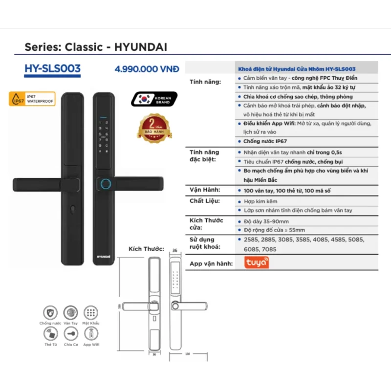 THÔNG SỐ KỸ THUẬT KHÓA VÂN TAY CỬA NHÔM HYUNDAI HY-SLS003