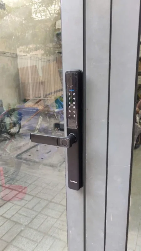 HÌNH ẢNH THỰC TẾ KHÓA VÂN TAY CỬA NHÔM HYUNDAI HY-SLS003