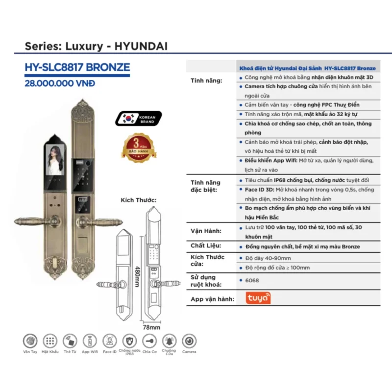 THÔNG SỐ KỸ THUẬT KHOÁ VÂN TAY ĐẠI SẢNH HYUNDAI HY-SLC8817 BRONZE