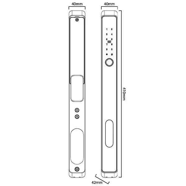 - Mặt khóa ngoài: Nhôm hàng không, nhựa ABS chịu lực