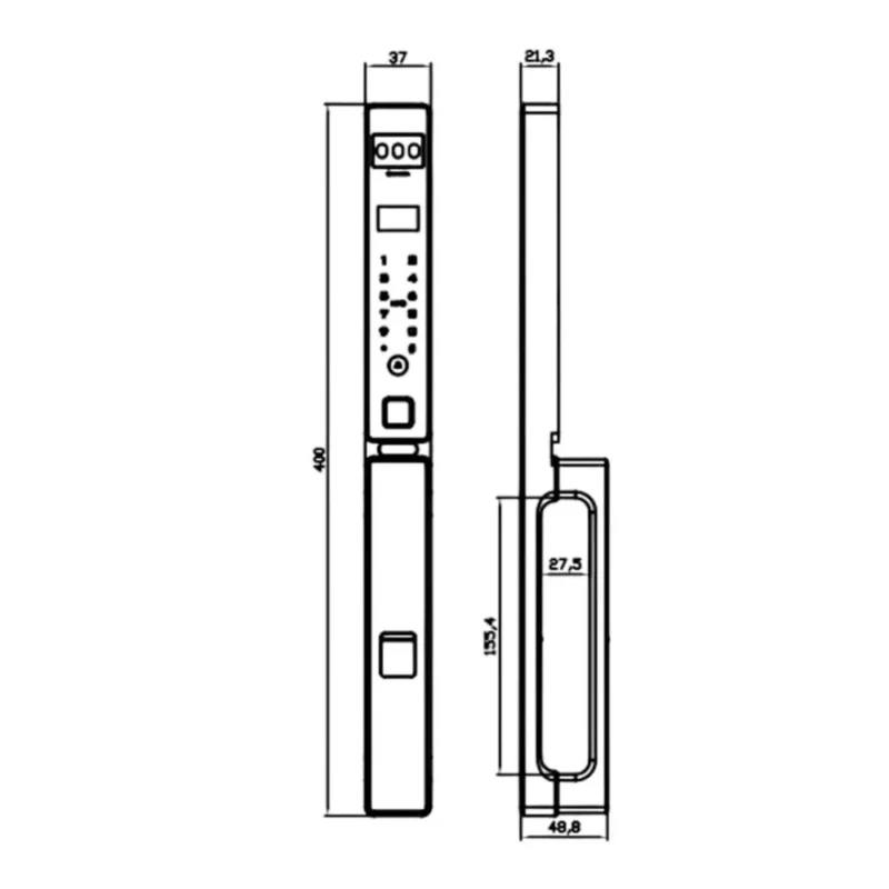 - Kích thước thân khóa ngoài: R 37 X C 400 x D 21.3mm
