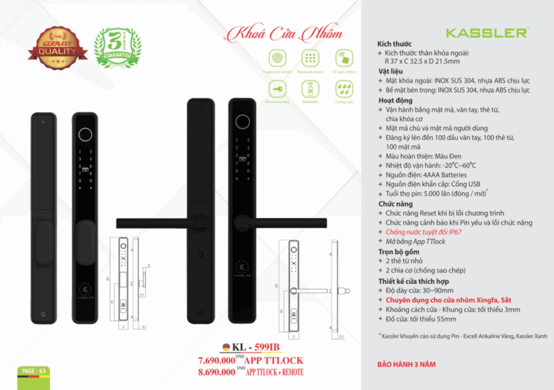 KHOÁ VÂN TAY KASSLER KL-599IB APP-REMOTE