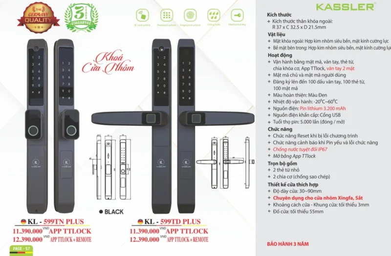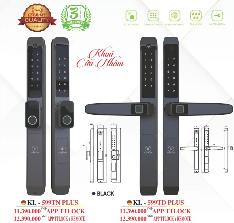 THÔNG SỐ KỸ THUẬT KHOÁ VÂN TAY KASSLER KL-599TN PLUS APP-REMOTE