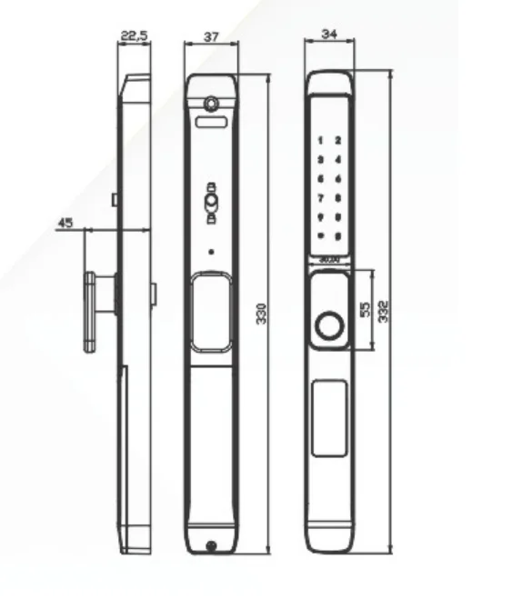 - Ngoài ra, sản phẩm còn dễ dàng lắp đặt với cửa có độ dày từ 30–90mm, khoảng cách cửa – khung cửa tối thiểu 3mm và đố cửa tối thiểu 55mm. Bộ phụ kiện đi kèm gồm 2 thẻ từ nhỏ và 2 chìa khóa cơ chống sao chép, giúp người dùng có nhiều phương án dự phòng khi cần thiết.