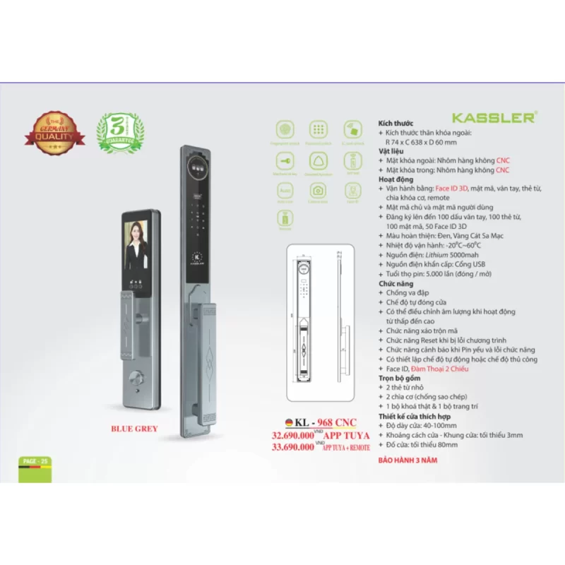 THÔNG SỐ KỸ THUẬT KHOÁ VÂN TAY KASSLER KL-968 CNC BLUE GREY APP REMOTE