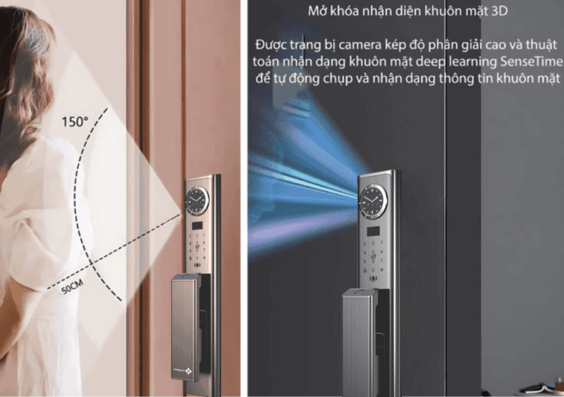 - Công nghệ nhận diện khuôn mặt 3D tiên tiến: Sản phẩm ứng dụng công nghệ mở khóa bằng nhận diện khuôn mặt 3D hiện đại, giúp thao tác mở cửa nhanh chóng và an toàn. Với khả năng nhận diện thông minh, khóa đảm bảo phân biệt chính xác chủ nhà và ngăn chặn hành vi giả mạo bằng ảnh chụp hoặc video. Đây là tính năng đặc biệt phù hợp cho gia đình đông thành viên, mang lại sự tiện lợi tối đa trong quá trình sử dụng.