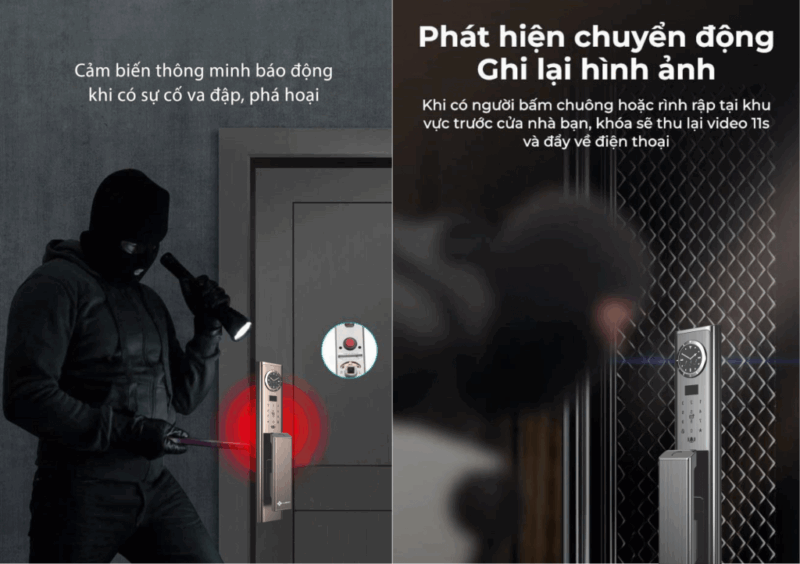 - Tiện ích đi kèm rất đầy đủ: camera kép với khả năng quan sát cả bên ngoài và bên trong cửa, nghe gọi video call từ xa, quản lý người dùng/truy cập qua App Tuya, cũng như lịch sử ra vào giúp kiểm soát tốt hơn. Tính năng cảnh báo mở khóa trái phép, cảnh báo đột nhập và vô hiệu hóa thẻ từ khi mất càng làm tăng sự yên tâm cho chủ nhà. Hệ thống vận hành với pin kép dung lượng cao, cùng bo mạch chống ẩm ổn định, đảm bảo thiết bị hoạt động liên tục.