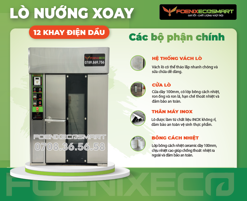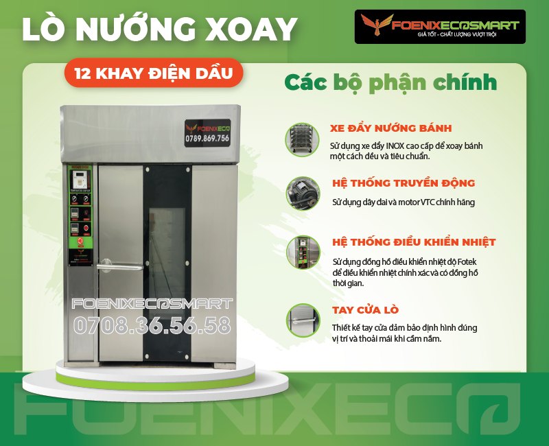 Thông số kỹ thuật Lò Nướng Bánh Mì Xoay 12 Khay Điện Dầu FOENIX ECO