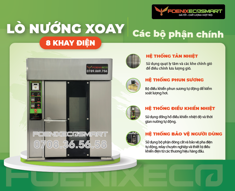 Đặc điểm nổi bật Lò Nướng Bánh Mì Xoay 8 Khay Điện FOENIX ECO