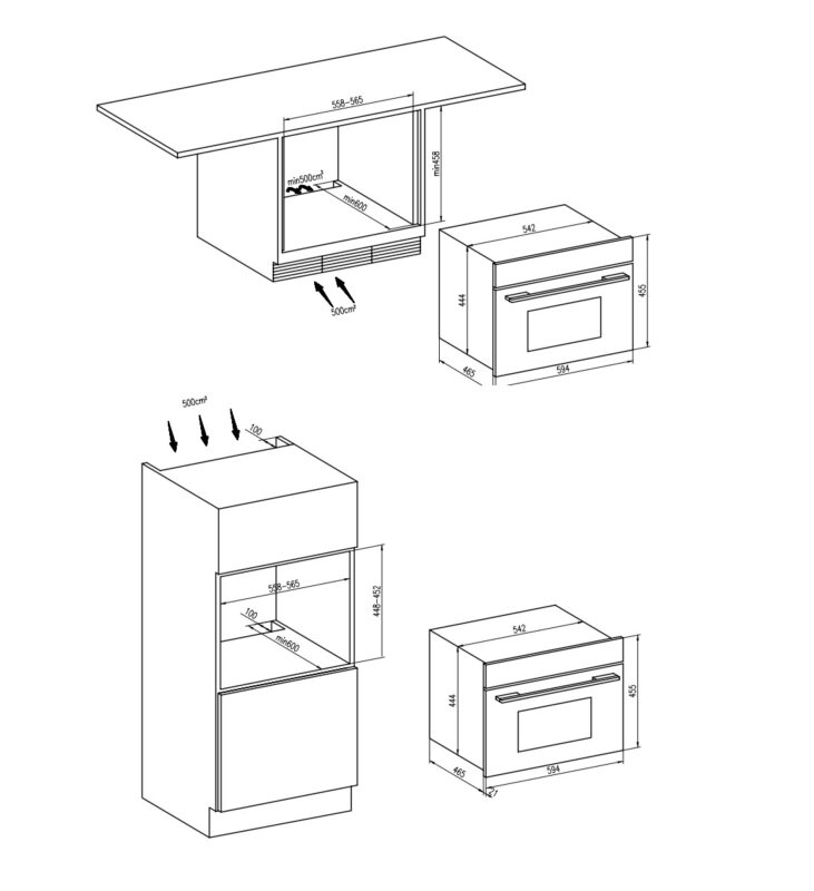 - Kích thước hộc tủ: (558-565)R x (448-452)C x min 600S mm