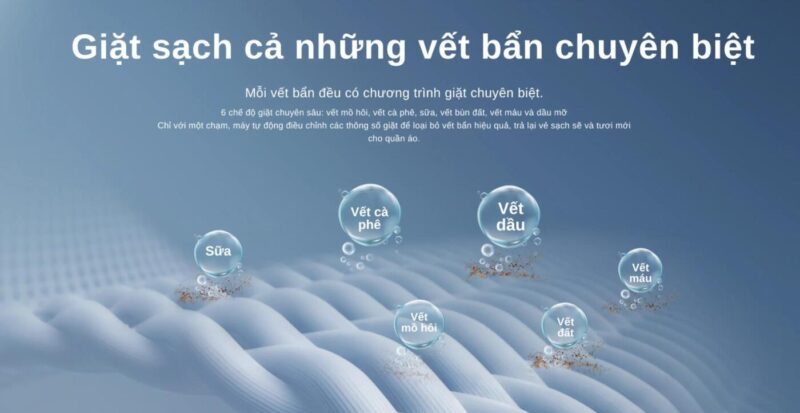 Công nghệ Essence Wash tạo bọt mịn ngay từ đầu chu trình, giúp chất giặt thấm sâu vào từng sợi vải. Quần áo được làm sạch hiệu quả hơn, hạn chế cặn bột giặt bám lại. Đồng thời, sợi vải vẫn giữ được độ mềm mại và bền màu sau nhiều lần giặt.