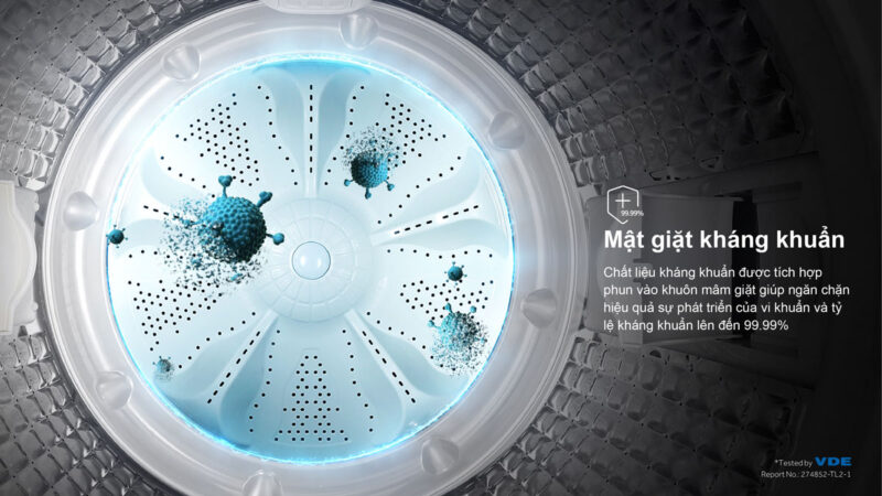 Máy tích hợp hạt HP có khả năng giải phóng ion kẽm và các chất kháng khuẩn trong nước giặt, giúp tiêu diệt vi khuẩn, nấm mốc và tác nhân gây mùi, góp phần bảo vệ sức khỏe cho các thành viên trong gia đình.