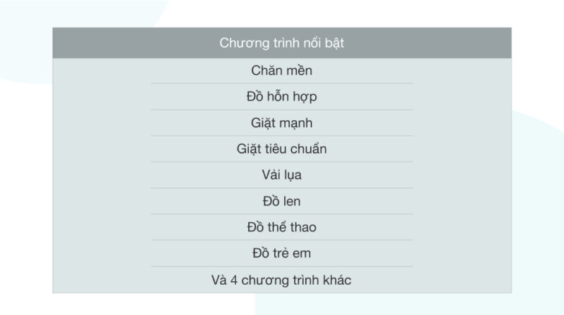 - Chế độ giặt: 12 chế độ
