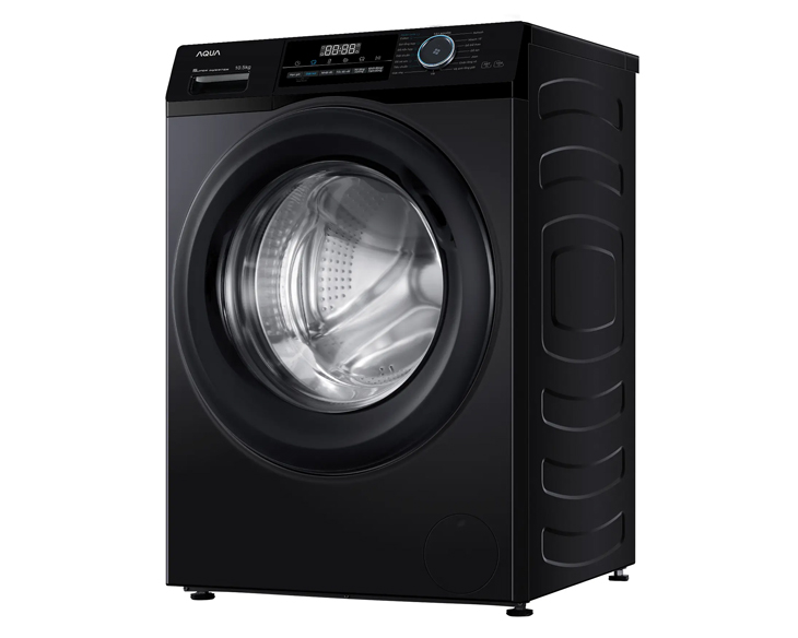 - Máy giặt Aqua Inverter 9.5 kg AQD-A952J(BK) gây ấn tượng với thiết kế cửa trước hiện đại, gam màu đen sang trọng, dễ phối hợp trong nhiều không gian nội thất. Kết cấu thân máy gọn gàng giúp tiết kiệm diện tích lắp đặt. Bảng điều khiển tiếng Việt kết hợp núm xoay trực quan, thuận tiện cho người dùng thao tác hằng ngày.