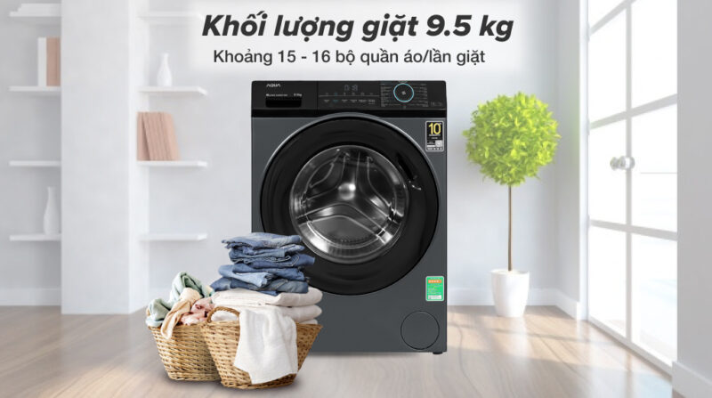 - Khối lượng giặt 9.5 kg, phù hợp gia đình 5–7 người