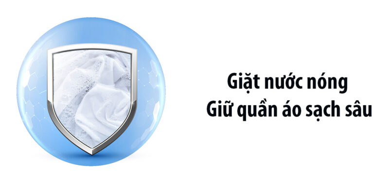 Máy giặt được tích hợp tính năng giặt nước nóng, giúp loại bỏ đến 99.9% vi khuẩn và các tác nhân gây dị ứng. Tính năng này đặc biệt phù hợp khi giặt chăn ga, khăn tắm hoặc quần áo trẻ em, mang lại sự an tâm cho sức khỏe cả gia đình.