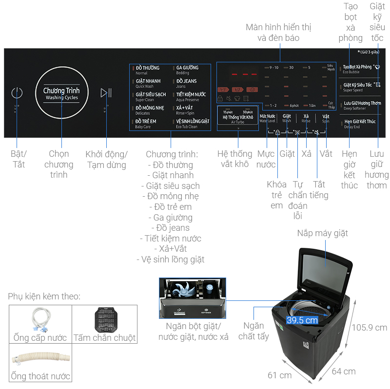 - Thời gian bảo hành: 2 năm thân máy, 20 năm động cơ