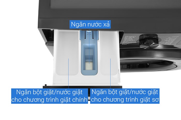 Máy giặt Samsung Inverter 12 kg WW12CGC04DABSV - Ngăn chứa nước giặt và nước xả tiện lợi: Khay đựng được thiết kế khoa học giúp phân bổ nước giặt – xả đều và đúng thời điểm, nâng cao hiệu quả giặt sạch mà không gây lãng phí.