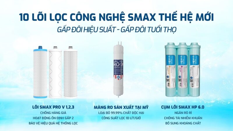- Hệ thống 10 lõi lọc Smax thế hệ mới