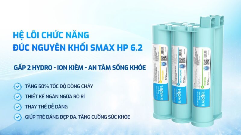 - Công nghệ Smax → hiệu suất lọc gấp 2, tuổi thọ gấp 2 so với lõi thường