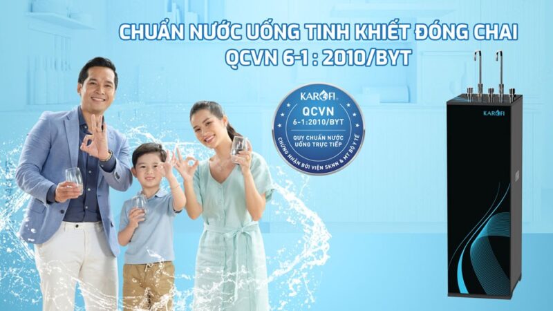 - Tuân thủ QCVN 6-1:2010/BYT (nước uống tinh khiết đóng chai) và TCVN 11978:2017 (máy lọc gia đình).