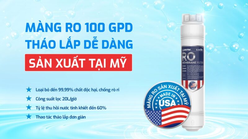 - Màng lọc: RO Purifim 100 GPD (Mỹ, thay nhanh)