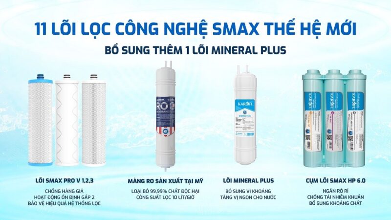 - Hệ thống 11 lõi lọc Smax thế hệ mới
