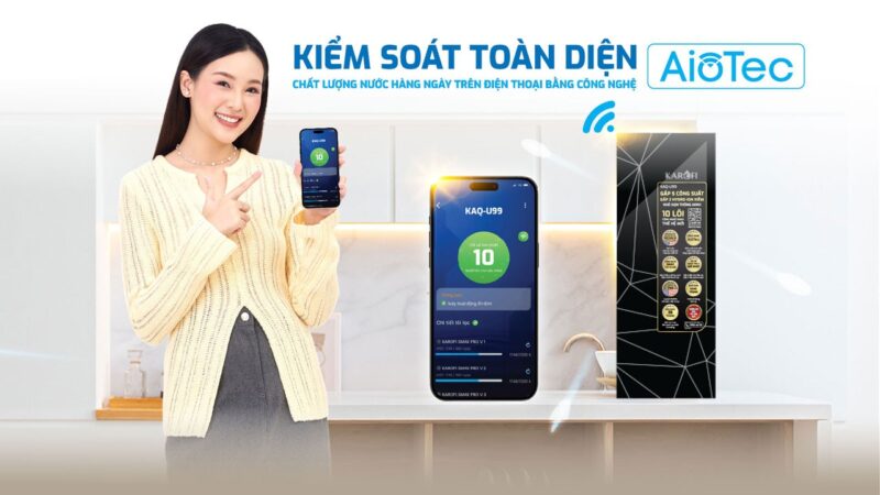 - Công nghệ AioTec thông minh: Cho phép giám sát chất lượng nước và tình trạng hoạt động của máy từ xa qua ứng dụng Karofi 365 trên smartphone, giúp người dùng dễ dàng theo dõi và bảo trì thiết bị .