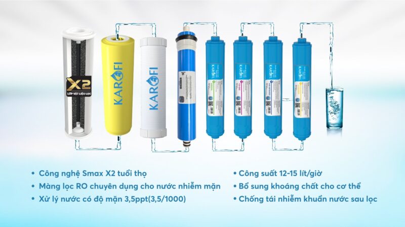 • Màng lọc: RO chuyên dụng cho nước lợ