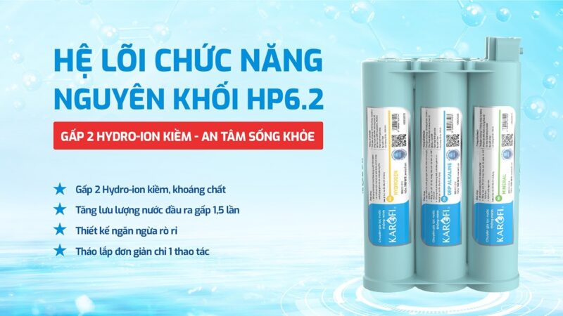 - Hệ lõi chức năng HP 6.2 nguyên khối, chống tái nhiễm khuẩn, bổ sung khoáng chất, Hydrogen và ion kiềm.