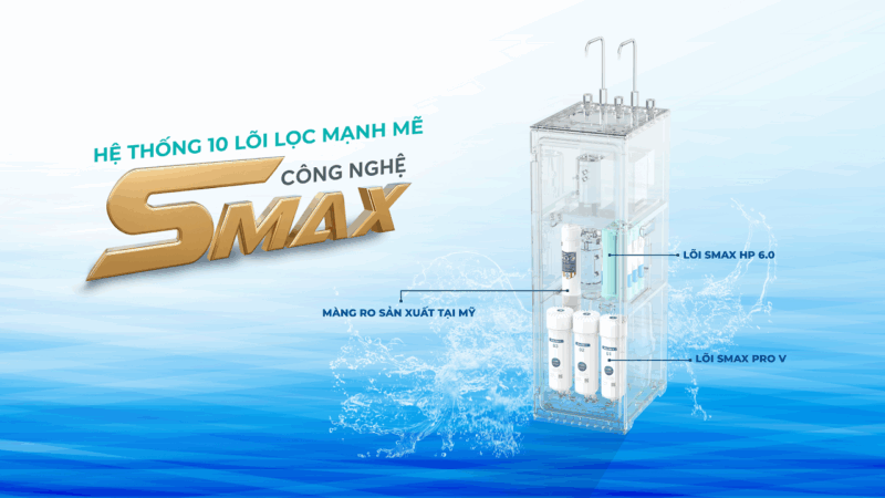 - Hệ thống 10 lõi lọc SMAX mạnh mẽ