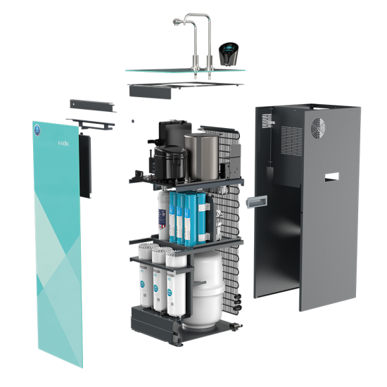 - Hiển thị trực quan: chỉ số độ tinh khiết (TDS), nhiệt độ, dung tích nước, tuổi thọ lõi, cảnh báo lỗi, cùng phím điều khiển cảm ứng thân thiện.