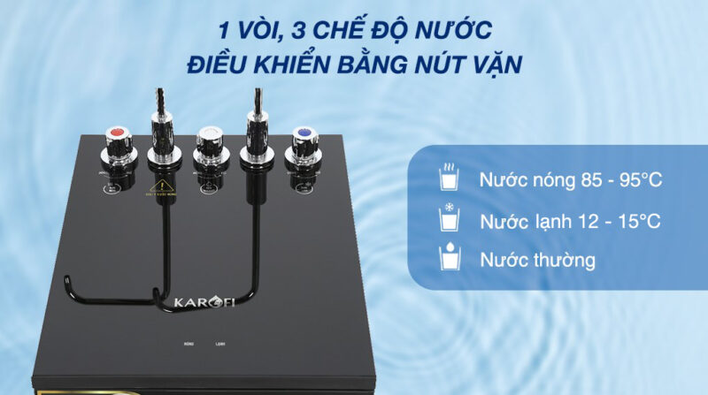 - Trang bị 2 vòi 3 chế độ nước (nóng – nguội – lạnh), công suất lọc mạnh 20 lít/giờ, đáp ứng tốt nhu cầu sử dụng thường ngày