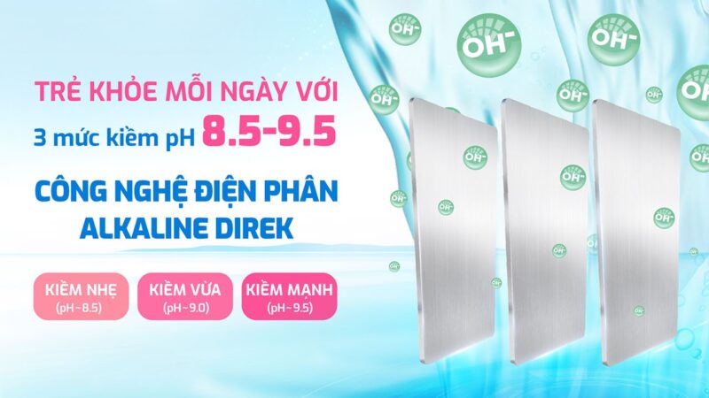 - Công nghệ Alkaline Direk – tạo 3 mức nước kiềm khác nhau