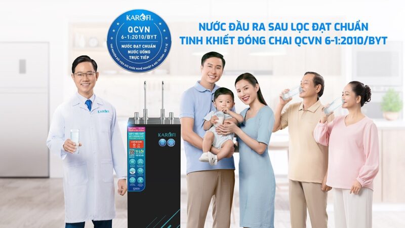 - Nước sau lọc đạt chuẩn QCVN 6-1:2010/BYT, uống trực tiếp tại vòi không cần đun sôi.