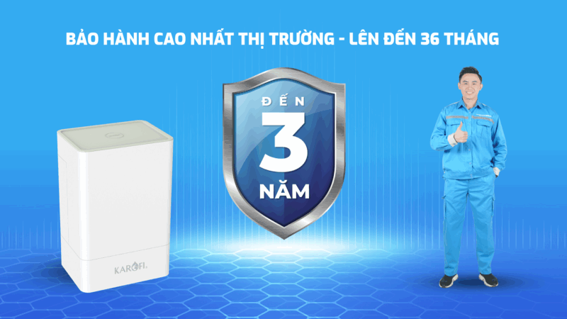- Karofi KAQ-U65 được bảo hành 36 tháng cho linh kiện điện thuộc hệ thống lọc nước (bao gồm adapter, bơm, van áp cao, van áp thấp, van điện từ, v.v.), là mức bảo hành cao nhất trên thị trường hiện nay, giúp người dùng an tâm sử dụng lâu dài.