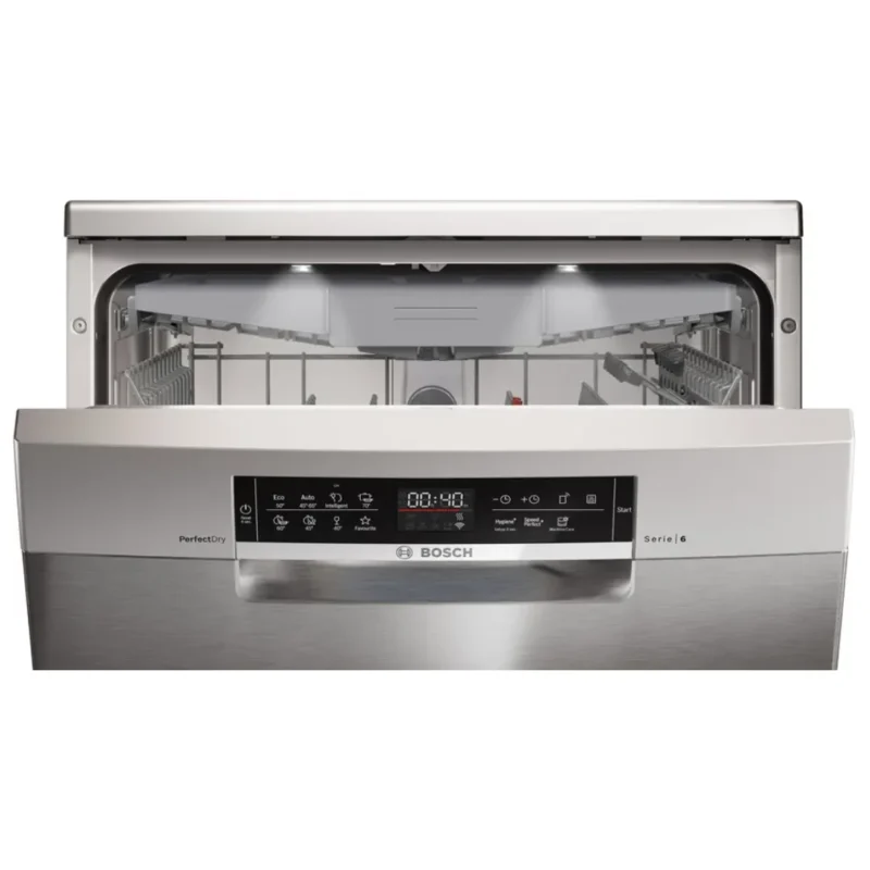 Bosch SMS6ZCI01P được trang bị 8 chương trình rửa khác nhau: Eco 50°C, Auto 45–65°C, Intensive 70°C, Rửa nhanh, Rửa ly 40°C,… Người dùng có thể lựa chọn phù hợp theo mức độ bẩn của bát đĩa.