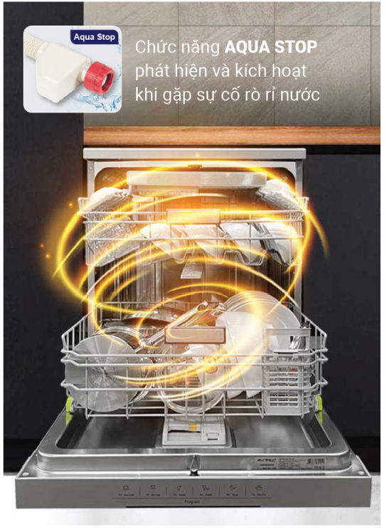 Hoạt động êm ái: Chức năng Eco Silence giảm tiếng ồn trong quá trình rửa, mang lại không gian yên tĩnh cho gia đình.