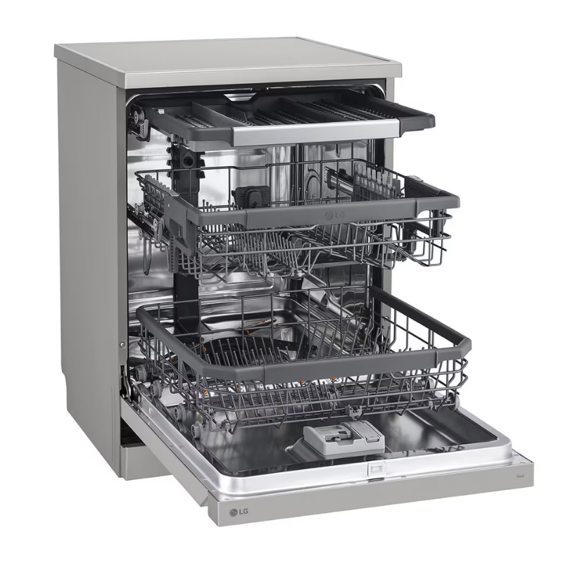 - Thiết kế của máy cũng rất linh hoạt và hiện đại với khay dao kéo riêng, khay trên có thể điều chỉnh chiều cao, chất liệu PCM bền bỉ và dễ vệ sinh. Với độ ồn chỉ 41 dB, LG LDT14SVA4 vận hành gần như không gây tiếng động, mang lại trải nghiệm sử dụng tiện lợi, an toàn và thoải mái cho mọi gia đình.