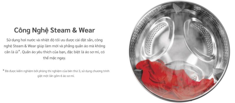 - Công nghệ Steam & Wear làm mới và giảm nhăn quần áo