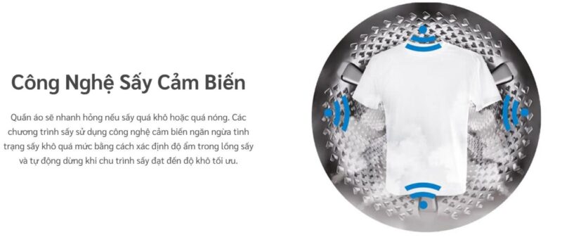 - Công nghệ sấy cảm biến thông minh bảo vệ quần áo tối ưu